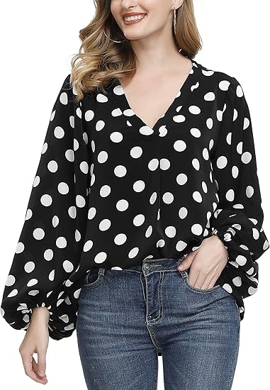 Women's Dressy Tops Balloon Long Sleeve Blouse V Neck Casual Floral Loose Shirts