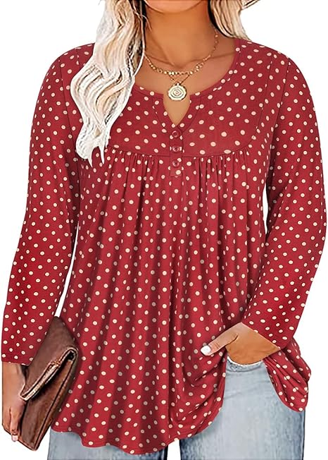 Plus Size Long Sleeve Tunic Tops for Women Henley V Neck T-Shirt V Neck Casual Blouses Fall Winter Halloween Christmas