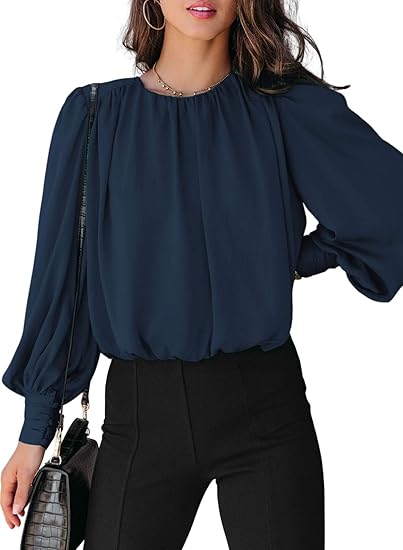 Womens Tops Blouses Dressy Casual Business Long Sleeve Top Crew Neck Tunic Loose Fit Trendy Outfits Fashion Clothes