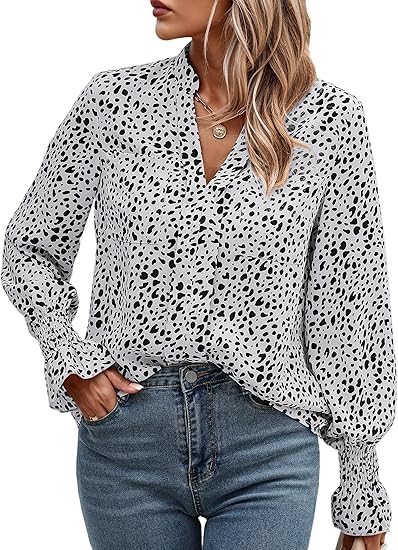 Long Sleeve Shirts for Women: Button Down Casual Fall Tops V Neck Polka Dot Trendy Tunic Dressy Fashion Spring Blouse