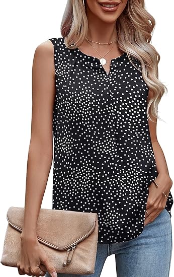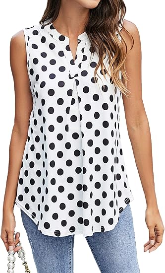 Women's Summer Sleeveless Chiffon Tank Tops Blouses Work Casual V Neck Button Blouses Shirts Tops