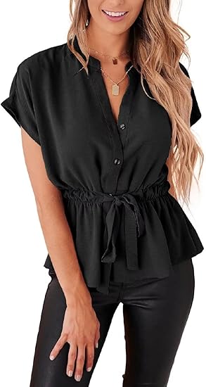 Womens Button Down Blouses Casual Peplum Summer Tops Dressy Chiffon Work Blouse