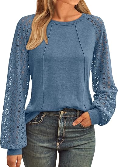 Womens Long Sleeve Shirts Casual Tops Dressy Outfits Fall Fashion Blouses Lace Clothes Y2k 2024