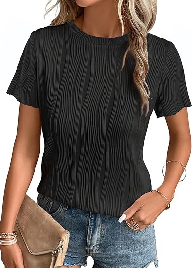 Womens Summer Tops Trendy Textured Short Sleeve T Shirts Crewneck Business Casual Outfits Tees Blouses