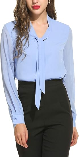 Chiffon Blouses for Women Dressy Bow Tie Neck Long Sleeve Work Shirt Formal Casual Wear