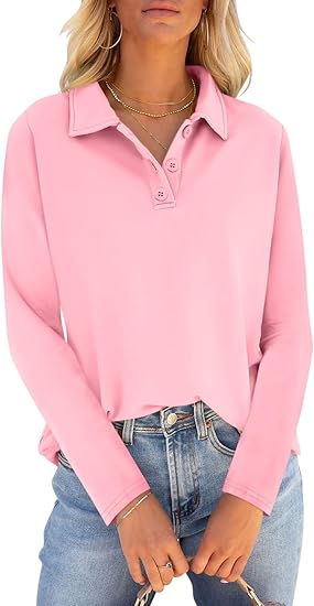Women's Long Sleeve Collared Polo Shirts V Neck Button Down Casual Tops