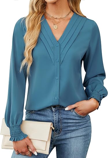 Women's Dressy Casual Blouses Business Long Sleeve Tops Button Down Shirts V Neck Work Fall Outfits 2024
