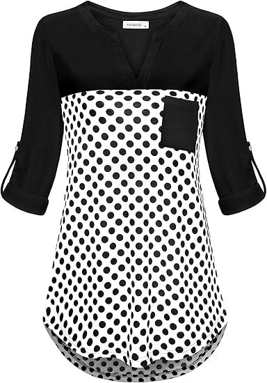 Womens Roll Up Long Sleeve V Neck Patchwork Blouse Shirt Tops
