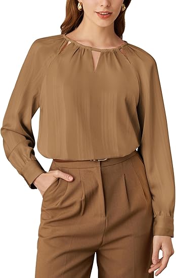 Womens Tops Blouses Dressy Casual Business Long Sleeve Top Crew Neck Tunic Loose Fit Trendy Outfits Fashion Clothes