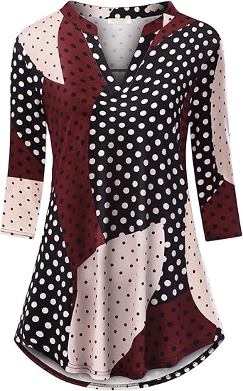 Womens 3/4 Sleeve Floral Printed Notch V Neck Blouses Tunics Tops